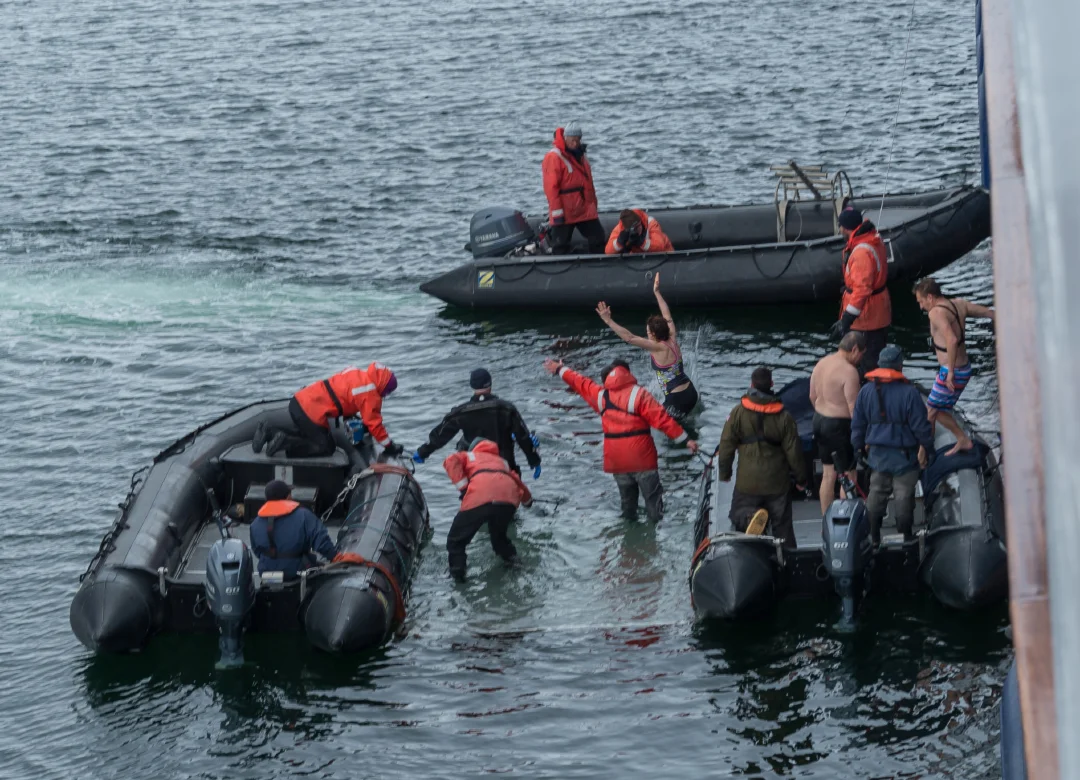 The presence of ice does imply cold. That said, our “summer vacation” in Antarctica was really not a lot colder or wintry than the northern hemisphere winter of Michigan I left behind. Although we technically set foot on the continent, we were on the tip of its most northern extent. Still, the water temp, measured at 29 degrees due to the salinity, posed a challenge for anyone brave (stupid) enough to entertain the notion of a Polar Plunge at the latitude of 76 degrees South!