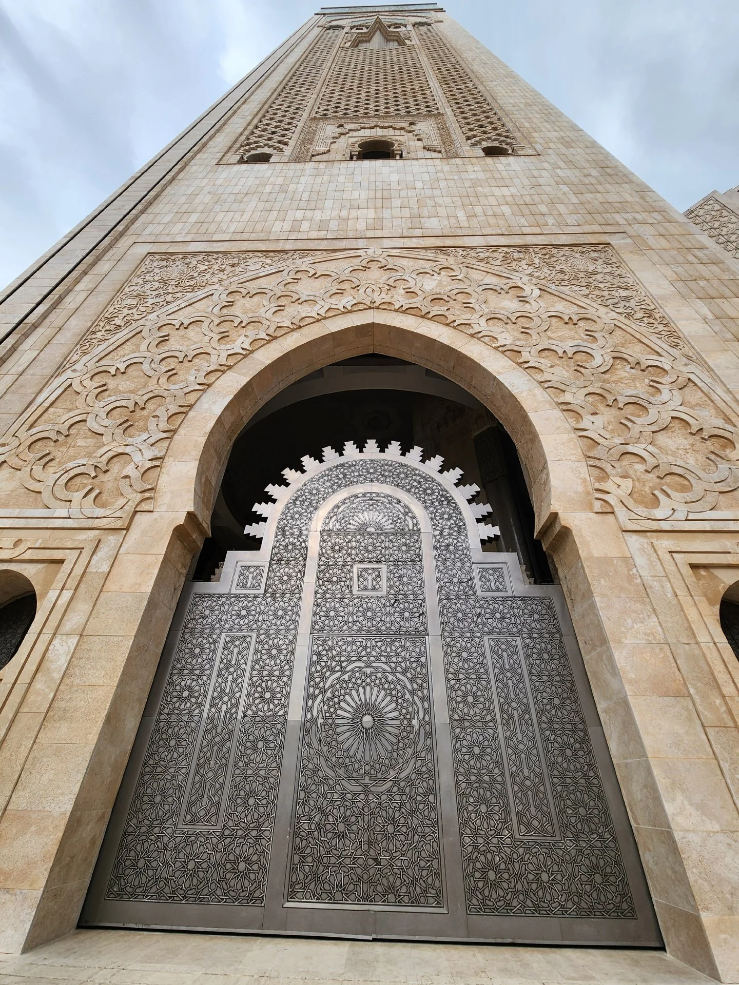 Looking up past the entry gate (weighing ) to the top of the minaret