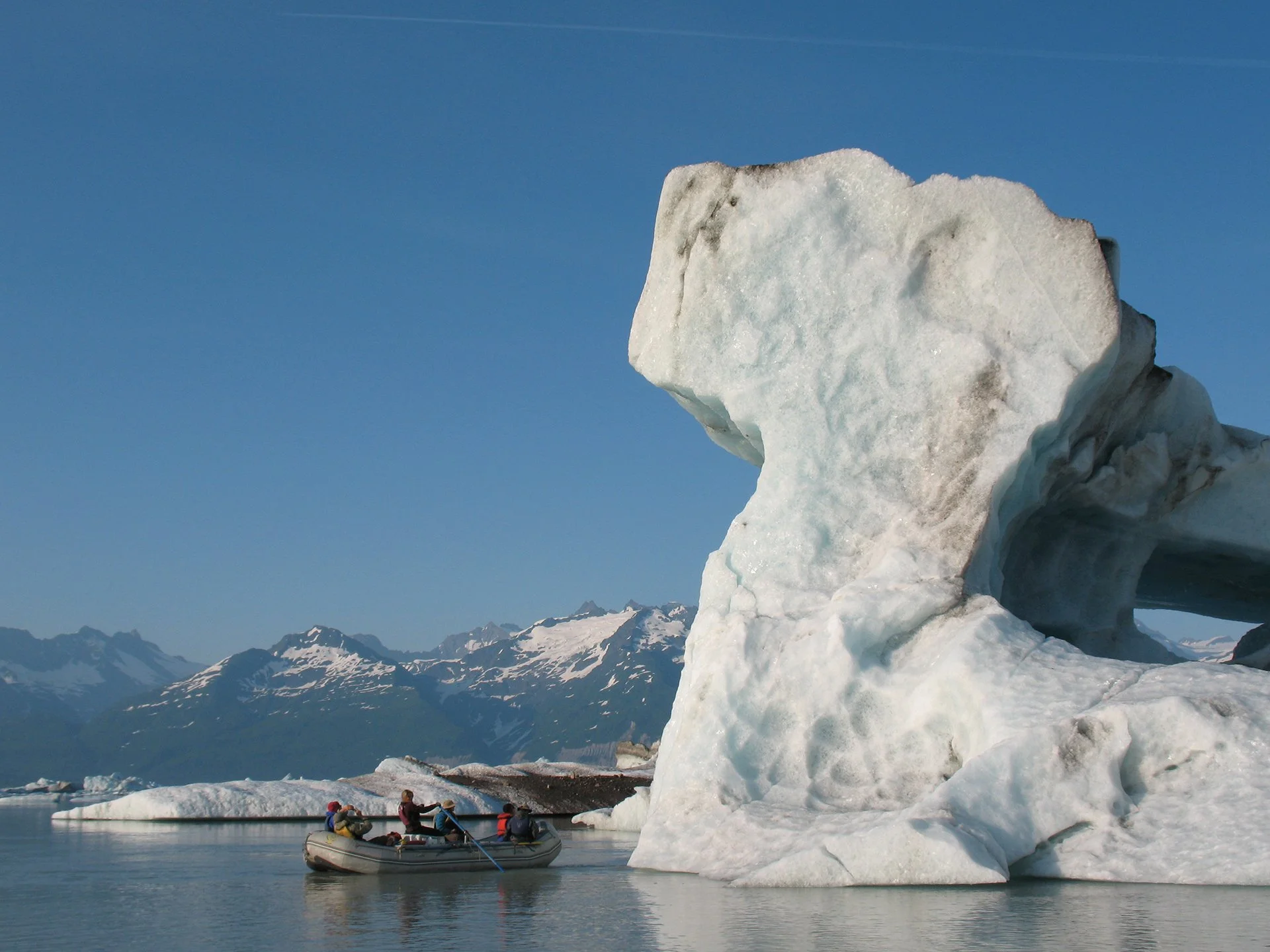 Lake Alsek’s giant icebergs–see the glacier in the distance?