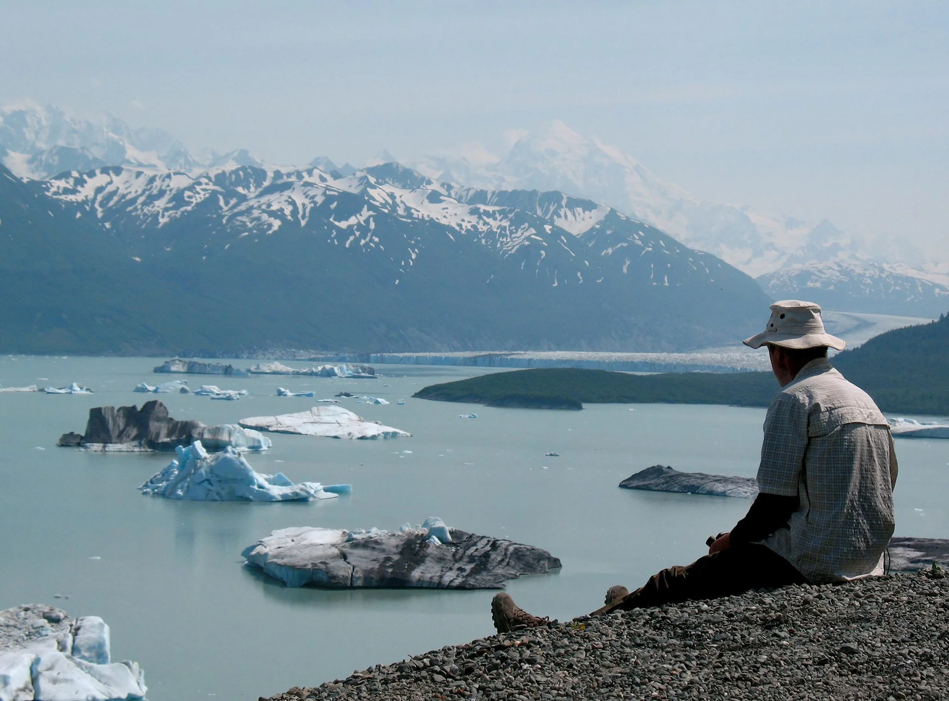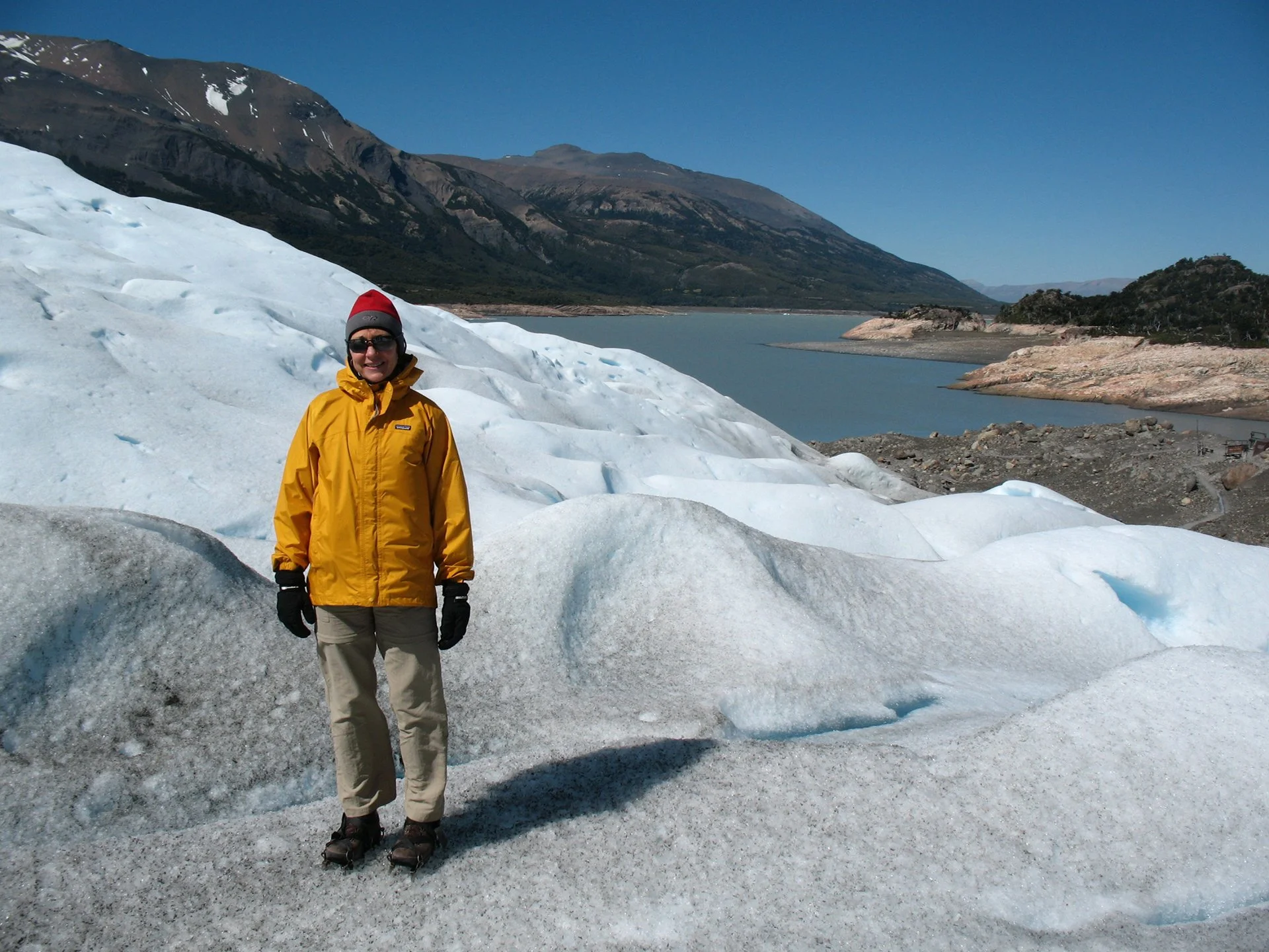 To me, glaciers seem like immense organic beings, not just lumps of ice. This notion, hatched in Alaska, was confirmed on a visit to the world’s largest non-polar icefield in Patagonia at the tip of South America. Glaciers have moods, and good days and bad. As we approached Argentina’s Perito Moreno glacier from a vantage point above it, severe winds sent up such intense spray that it made a wind-bow below us (sort of like a rainbow, but better). Later, while walking on the glacier with crampons, we paid close attention to the guides for fear of becoming lost in the spires and valleys.